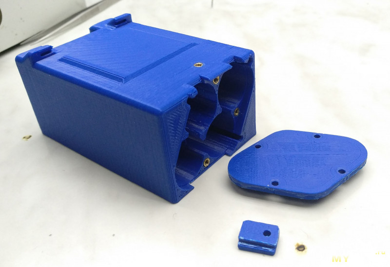 Сначала подумывал сделать пружинные контакты для аккумуляторов, но отказался от этой мысли. Для больших токов это не лучший вариант, поэтому оставил в держателе вырезы для никелевых полосок, которыми аккумуляторы будут спаяны. Так же оставил вертикальные вырезы для проводов, которые должны выходить от межбаночных соединений за пределы крышки.