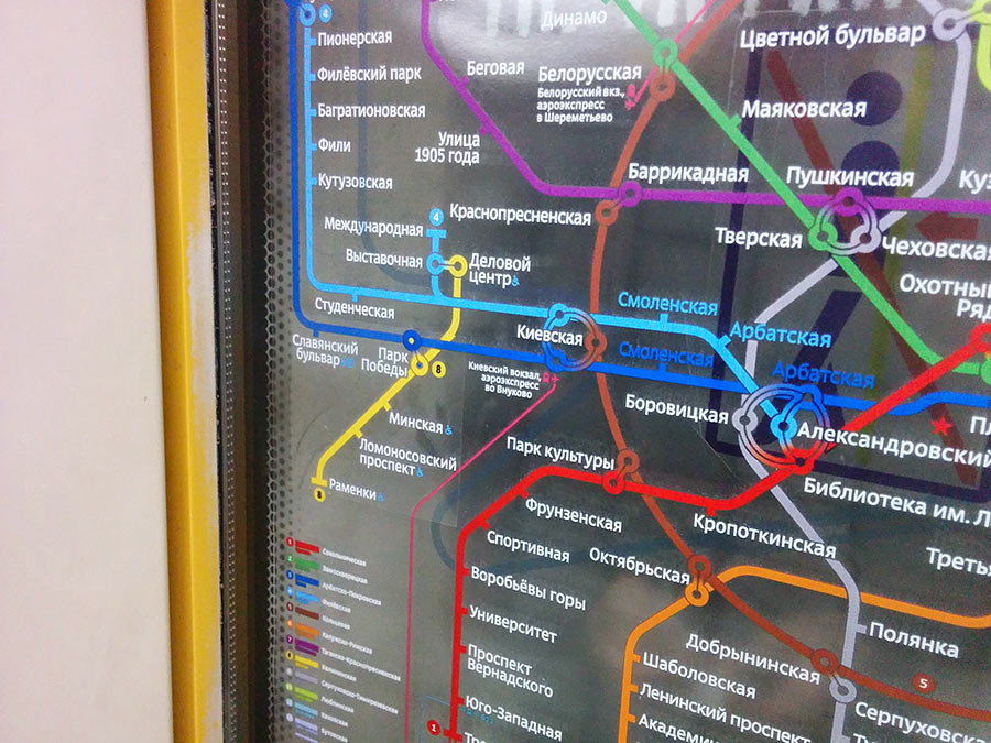 Встречаются и ошибки. На одной из «Киевских» на указателях Филевская и Арбатско-Покровская линии обозначены одним цветом – голубым! Да, там стоят и цифры, но уж так повелось, что мы опознаем линии по цвету, а не по номерам. В итоге я несколько раз переходила не туда».