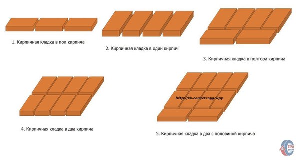 Толстые стены меряются обычно в кубических величинах, кладка в полкирпича и даже в полтора – меряется в квадратных метрах и сантиметрах. Если стена содержит всего половину строительного элемента, то требуется всего шестьдесят один кирпич на единицу площади в 1 кв. метр, если со швами, то это будет пятьдесят один. Существует несколько видов кладки.