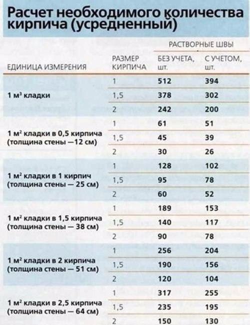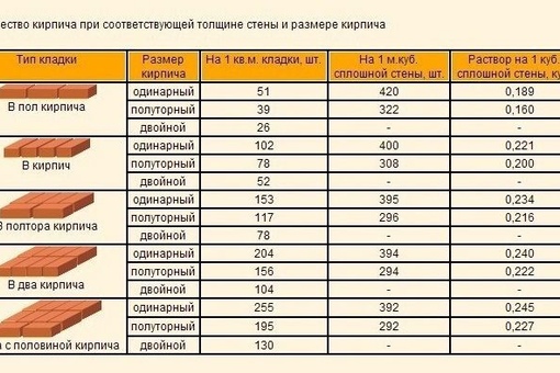 Параметры кирпича могут варьироваться, поэтому чтобы точно знать, какое количество материала необходимо на один «квадрат», надо будет прикинуть точные размеры.