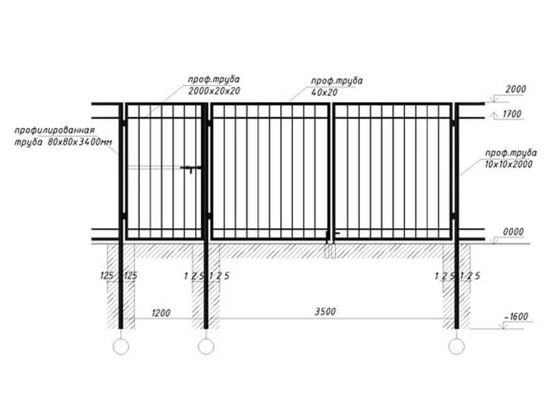 - Установка ограды предполагает отвод дождевых и ливневых вод. Для этого в ленточном фундаменте предусматривает укладка дренажных труб или арок. При использовании несплошного фундамента таких проблем не возникает.