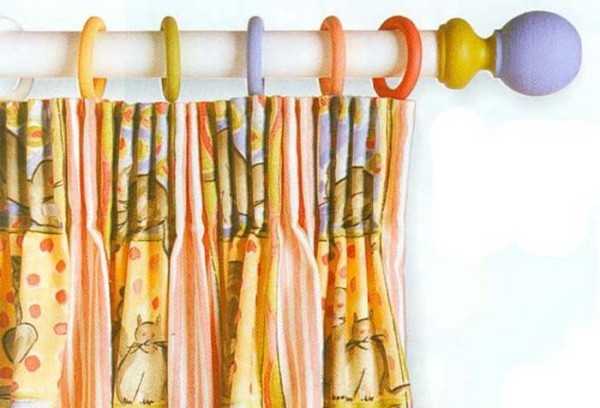 Основной несущий элемент – металлическая или деревянная штанга, на которую надеваются кольца с крючками или прищепками, удерживающими полотно.
