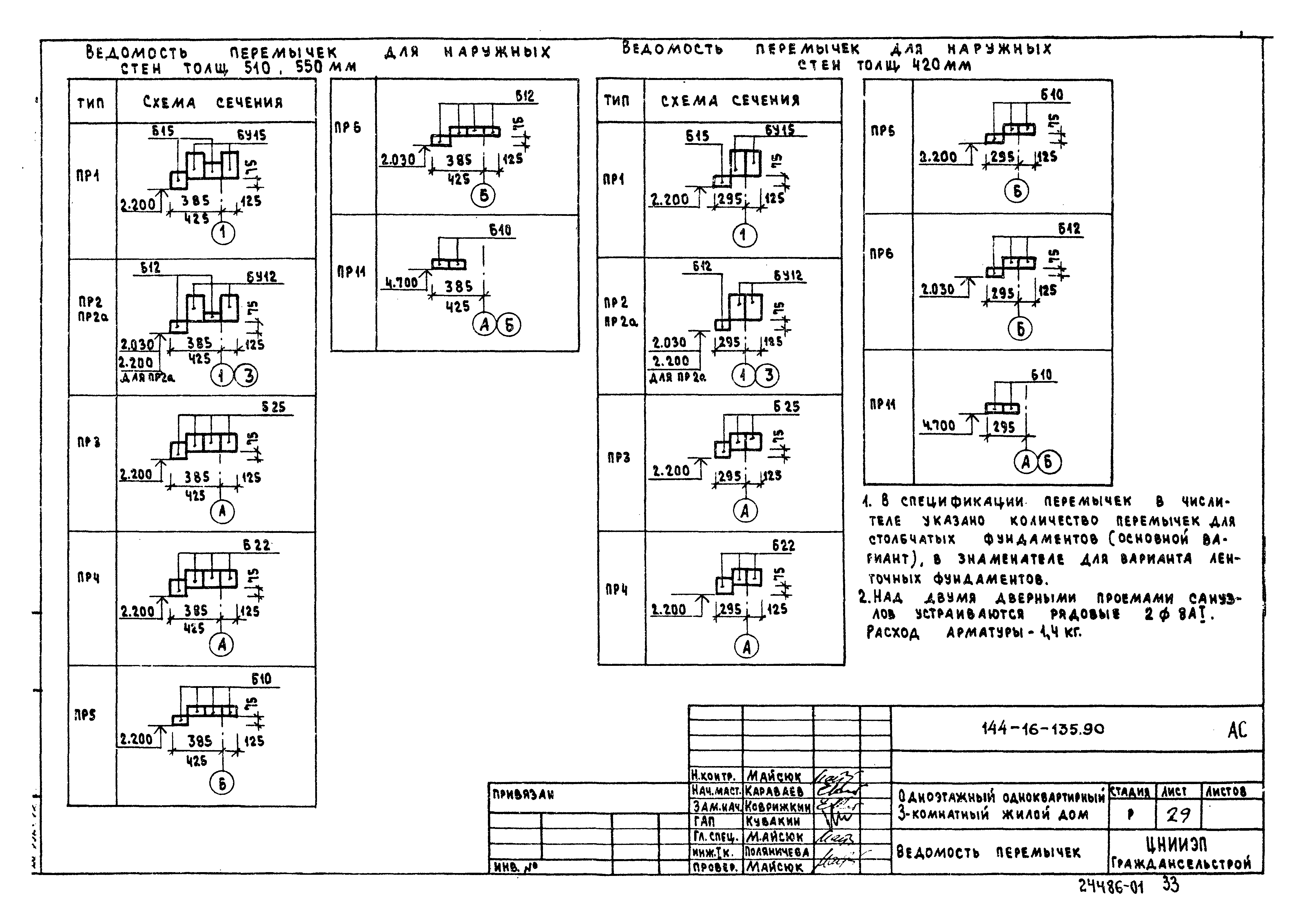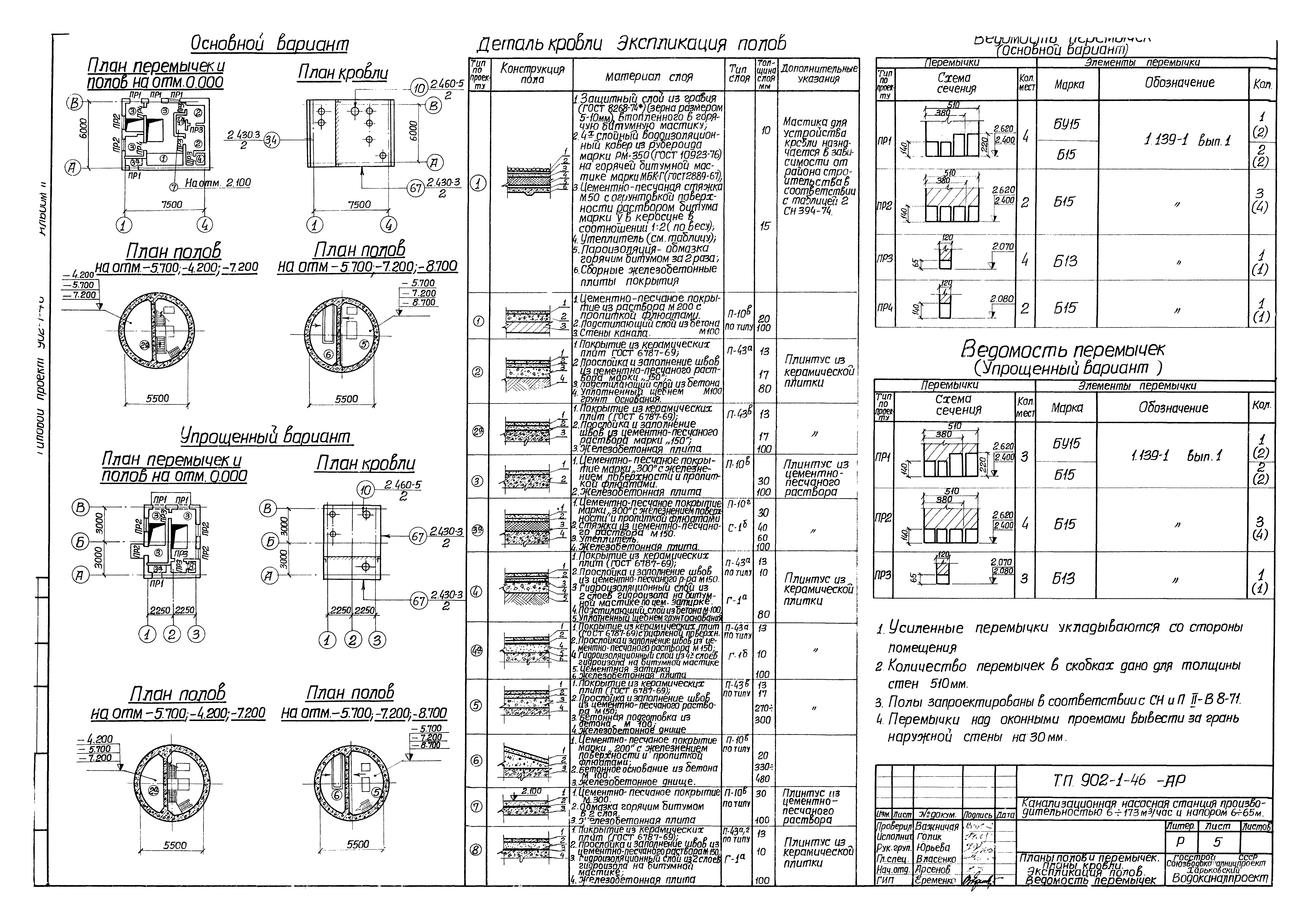 Над проемами в стенах уложены сборные железобетонные перемычки. Перемычки уложены на кирпичные стены по слою цементного раствора М50.