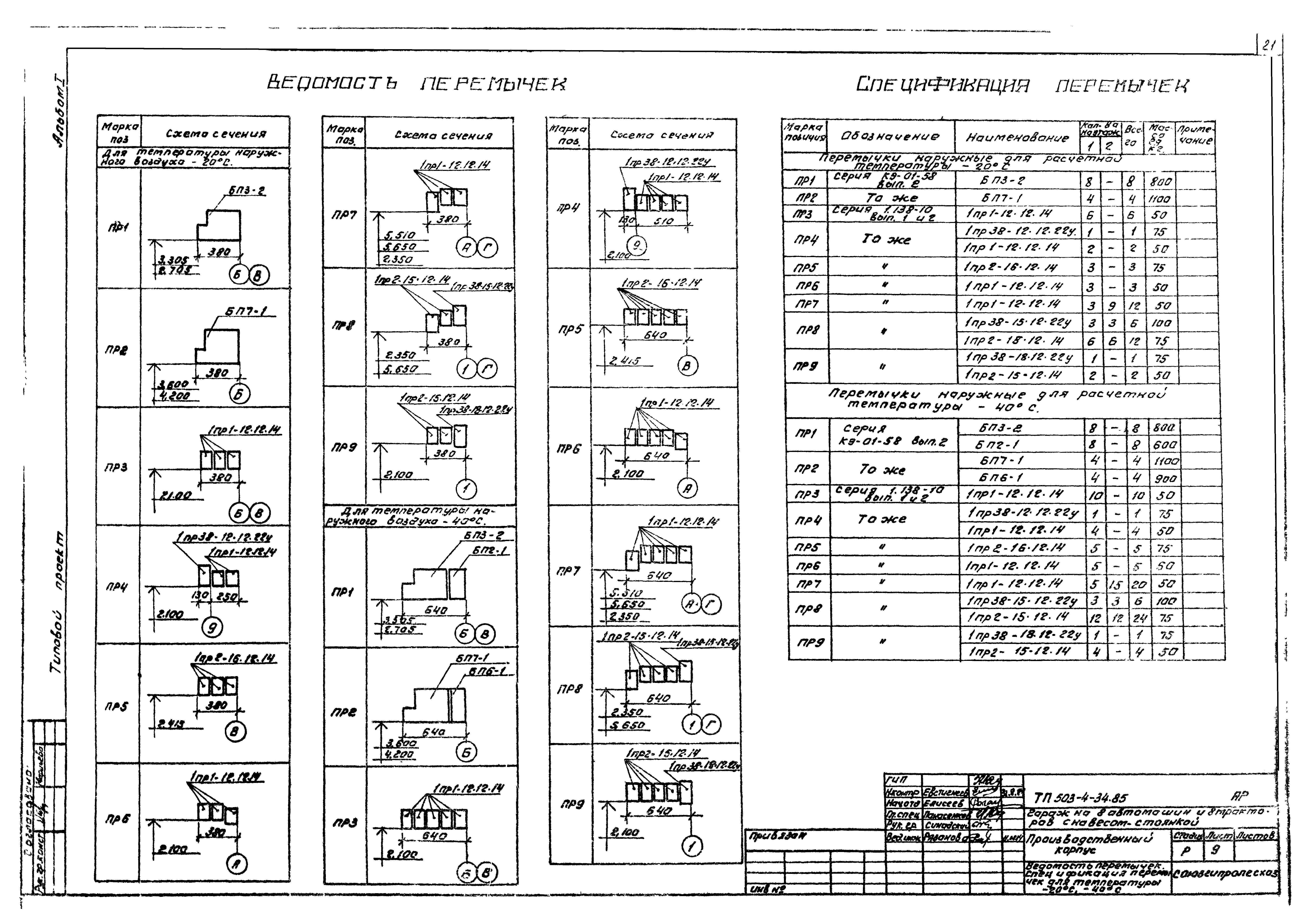 Таблица 7 — Спецификация перемычек ГОСТ 21.501-93