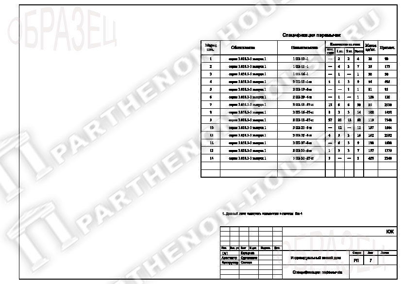 | Поз. | Обозначение | Наименование | Количество на этаж | Масса ед. , кг