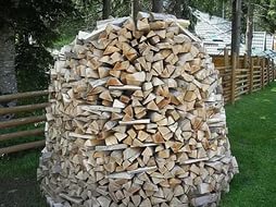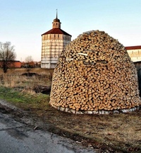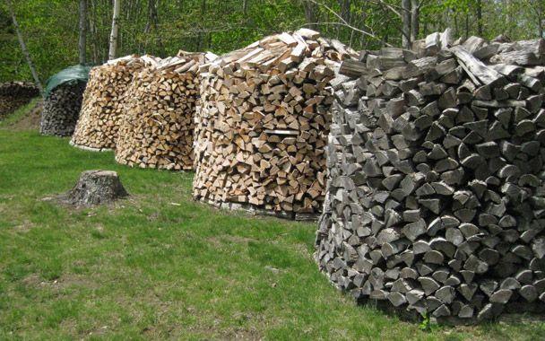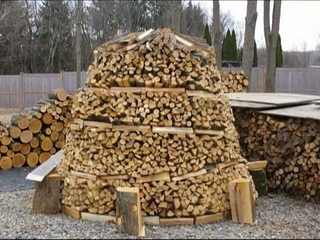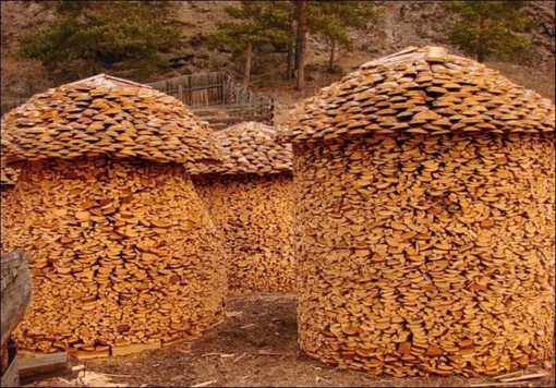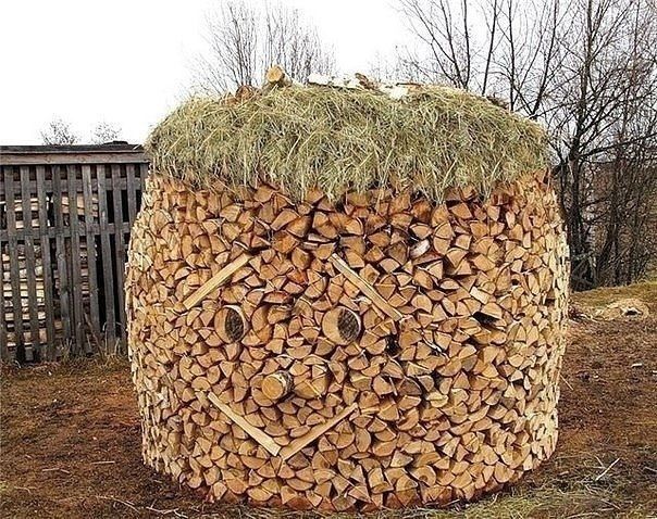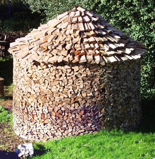 Некоторые любители дровяного зодчества создают интересные конструкции поленниц, напоминающие купол или стог сена.