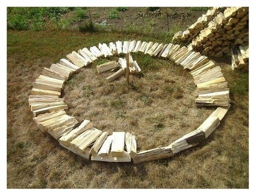 Первый этап – выравнивание площадки и вычерчивание круга, по которому будут складываться поленья.