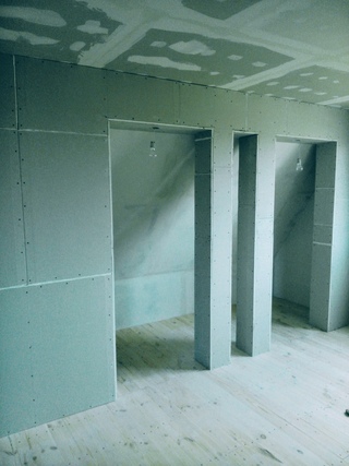 - Обшивка тепло/звукоизоляцией и гипсокартоном.