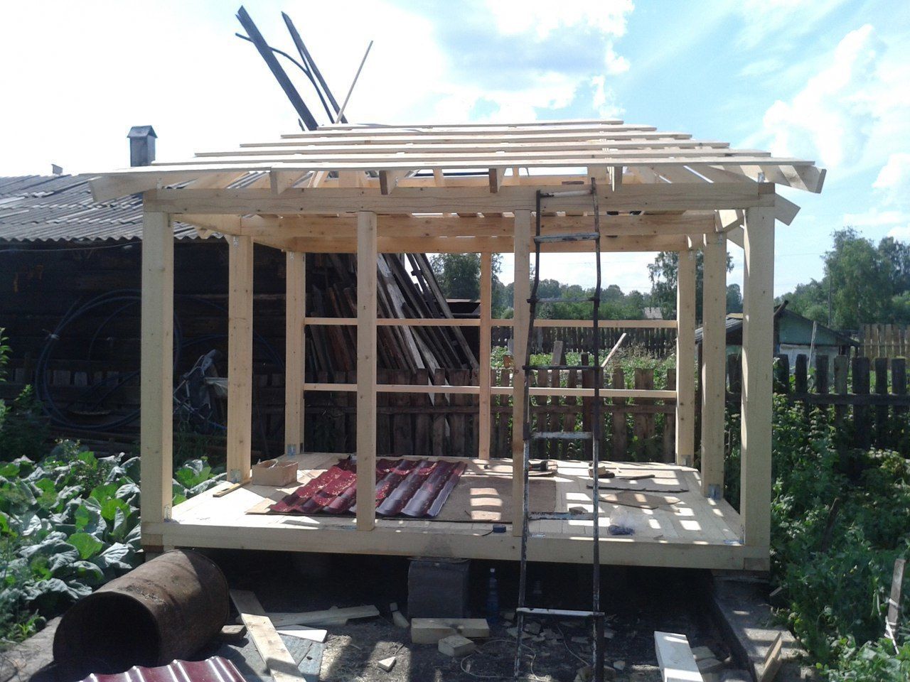 Получившийся каркас служит опорой для крыши строения. Теперь устанавливаем стропильную конструкцию, следуя рекомендациям: