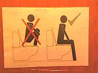 Этот женский писсуар во Франкфурте, Германия, запрещает сидеть на нем и поэтому просит пользователя навести на него курсор. Туалеты без смыва [править]