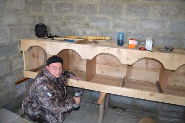 При расчете потребности в насестах нужно знать, что каждой птице понадобится не менее 30 см жердочки. Зная число пернатых жителей курятника, вычисляем количественную потребность в насестах. Делать их лучше из прямоугольного бруса 40х60 мм. Жердочки нужно скруглить, иначе они будут травмировать птиц. Размещать друг от друга насесты следует на расстоянии в 50 см на высоте в 60-80 см от пола, но не друг над другом. Лотки, помещенные под насест, облегчат процесс уборки курятника.