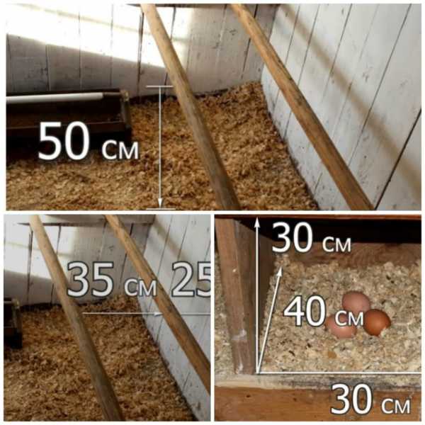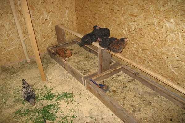 Размещают жерди в курятнике на расстоянии 35–40 см друг от друга, на разных уровнях. Нижний насест располагают в 50 см от пола. Расстояние выше этого не даст молодым птицам свободно на него забираться.