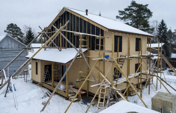 Лучше всего строить дома зимой из бруса и по каркасной технологии.