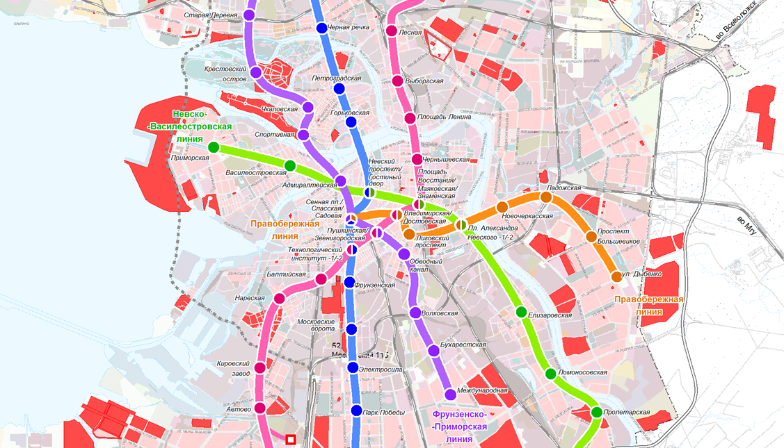 На северо-западе города предложено вилочное развитие Фрунзенско-Приморской линии — в Каменку и Парголово. Предложено так же строительство Адмиралтейско-Охтинской и Кольцевой линий.