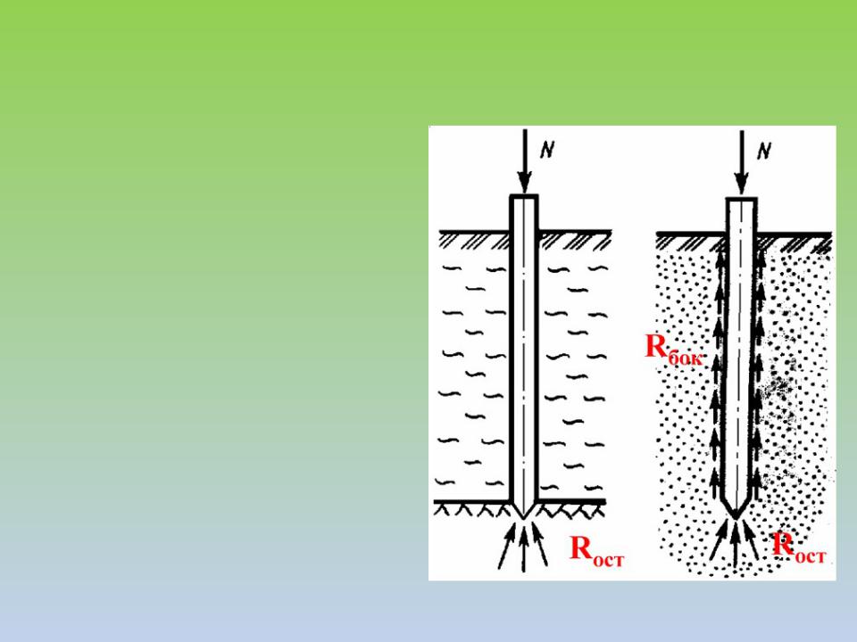Примечание: При расчете висячих свай следует учитывать влияние отрицательных сил трения (если таковые имеются), уменьшающих несущую способность свай.