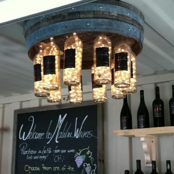 Если задумка с созданием светильников из винных бутылок кажется вам глупой, то посмотрите на творения Джерри Котта. Этот дизайнер использует прозрачные бутылки для создания стильных люстр, которые стоят от 200 до 300 долларов.
