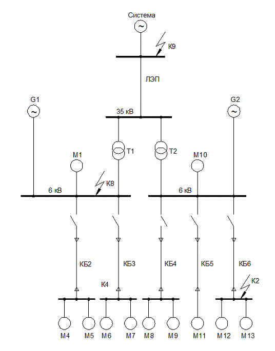применяют разомкнутые схемы, отвечающие требованиям ограничения токов короткого замыкания и независимого режима работы секций.