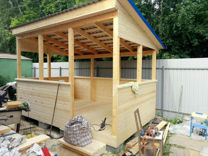 Теперь разберем, как сделать крышу для веранды. Сборка выполняется следующим образом: