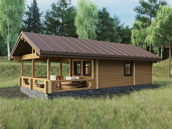Самый доступный вариант — построить каркасную веранду к бане из бревна или бруса размерами 100 × 150 мм или 100 × 100 мм. Строительные работы выполняются по следующей технологии: