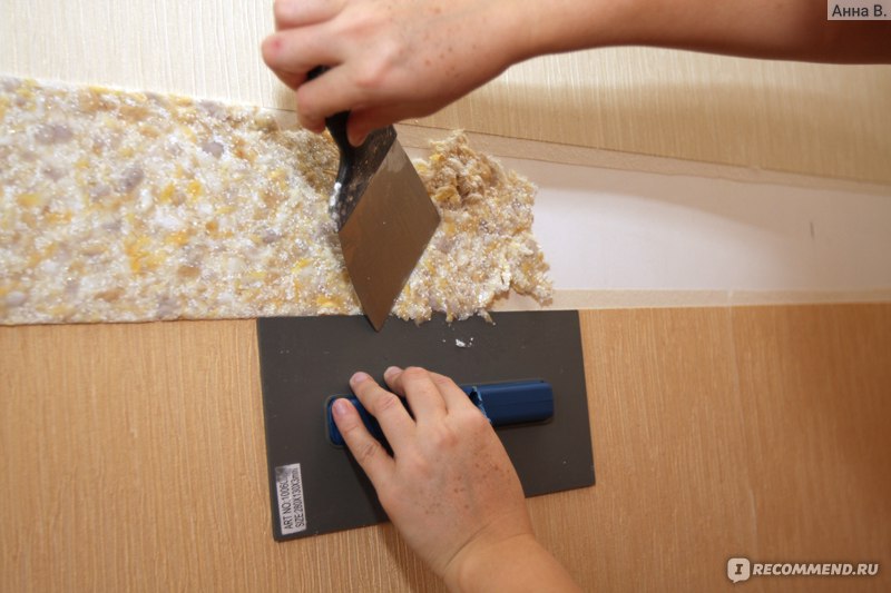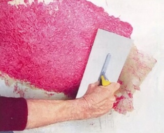 Наносить жидкие обои удобно неметаллическим шпателем шириной до 10 см. Им же и размазывают материал.