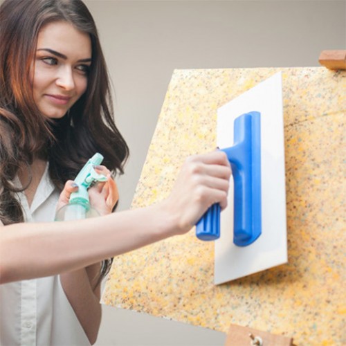 - Сбрызнуть стены водой из пульверизатора, стыки сгладить валиком или шпателем.