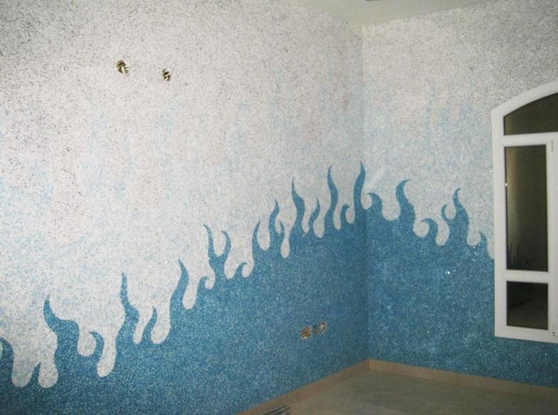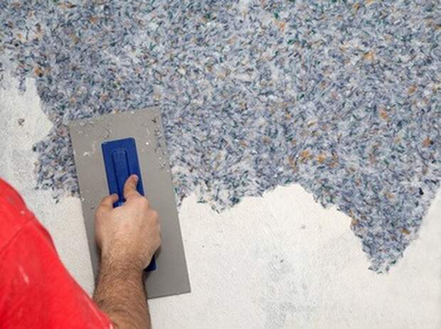 - Если помещение большое — жидкие обои целесообразно наносить с помощью краскопульта.