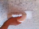 По завершении работы увлажнить потолок и валиком обработать стыки.