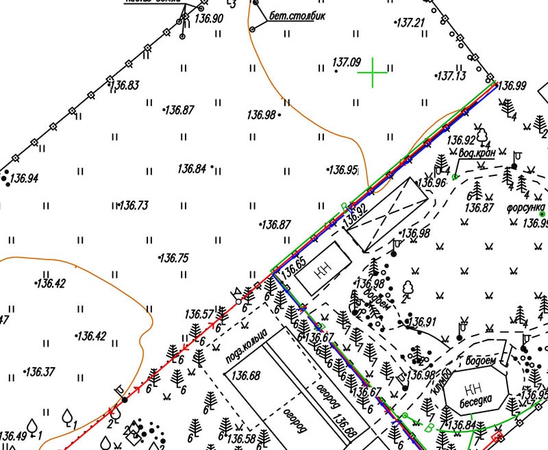 - Благоустройство территории, создание проекта ландшафтного дизайна. Крупномасштабные топопланы позволяют наиболее точно расположить дизайн-объекты на участке, обустроить дренажную и ливневую канализацию.