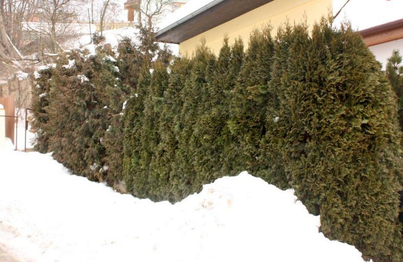 Туя – вечнозеленое растение и хорошо переносит «обычные» зимы.