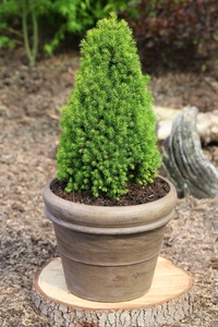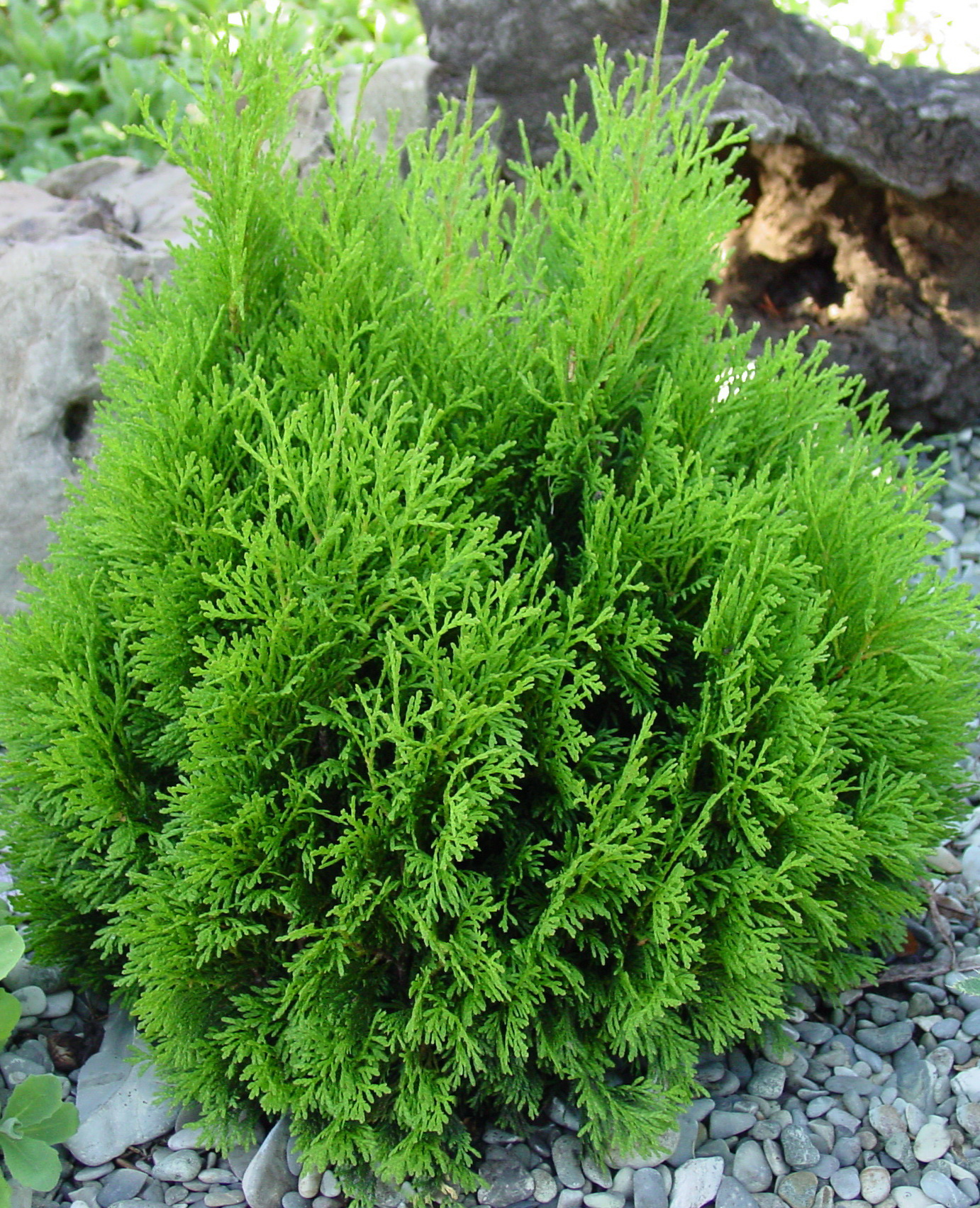 Это вечнозеленое карликовое растение с небольшой конусовидной кроной и ярко-зеленой блестящей хвоей. Эта туя похожа на маленькую пирамиду. Она прекрасно смотрится как в одиночных, так и групповых посадках (например, в бордюрах).
