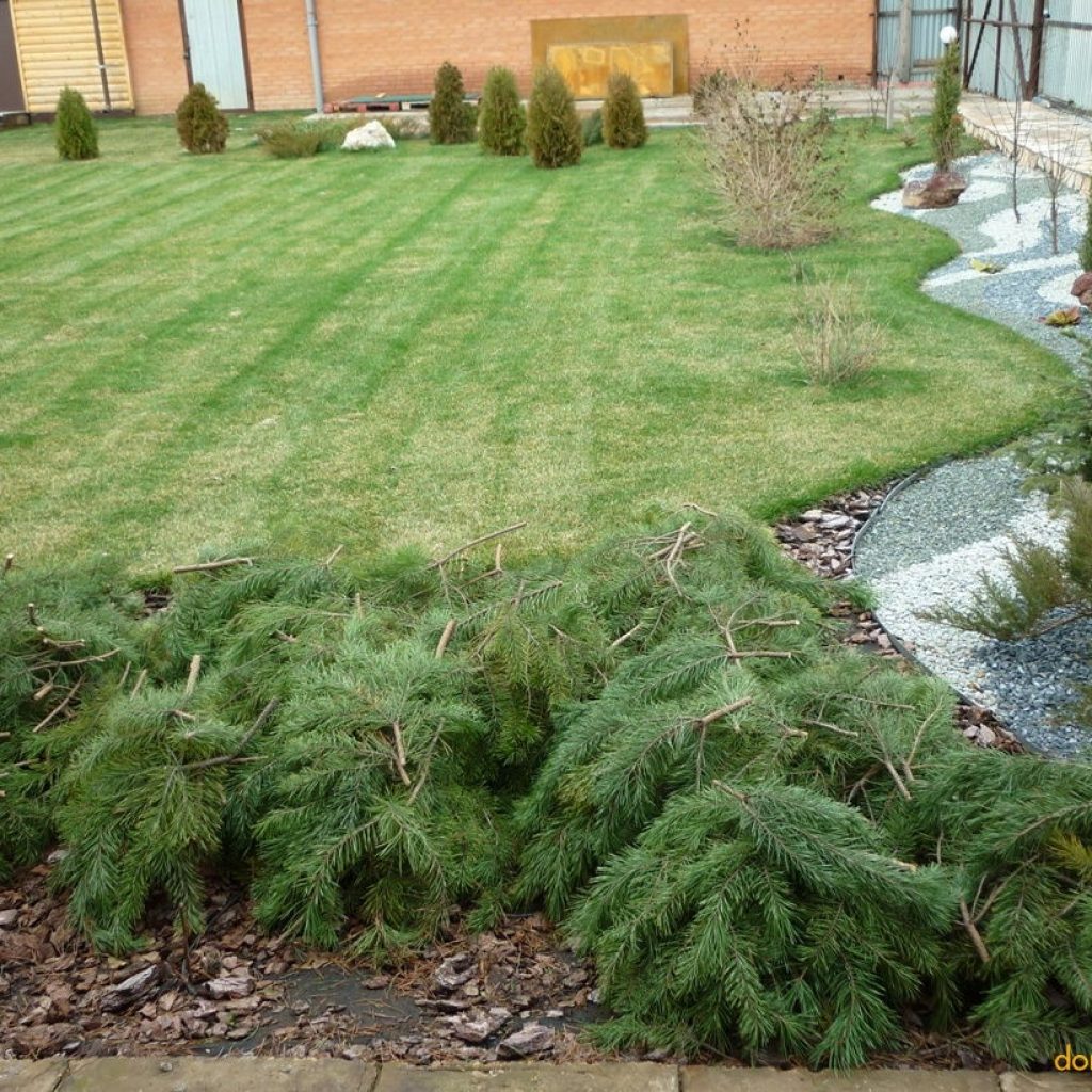 В зимний период дополнительную защиту дает снежная подушка, создать которую можно, стряхивая периодически снег с ветвей.