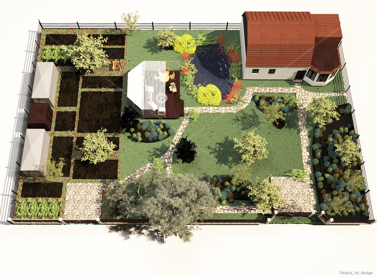 - Садовая. По желанию размещают огород, но следует помнить о его природной освещенности (вокруг него не должно быть высоких деревьев).