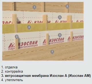 Изоспан А по инструкции укладывается на утеплитель с его наружной части. Его следует нарезать на широкие полосы и монтировать внахлёст, для того чтобы гладкая сторона материала осталась снаружи.