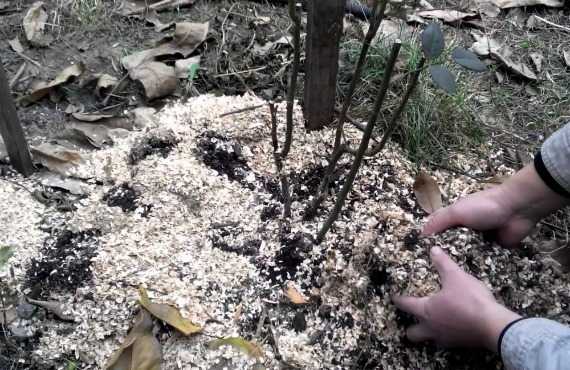 Компост является не только ценным удобрением, содержащим целый спектр полезных веществ, но и прекрасным материалом для мульчирования на зиму. Он хранит комфортную для корней температуру, не перекрывая доступ воздуха ит регулируя уровень влажности. Его выкладывают под основание кустов после последнего полива.