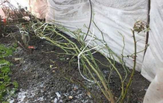 На фото: Укрытие роз на зиму укрывным материаломУкрытие роз на зиму