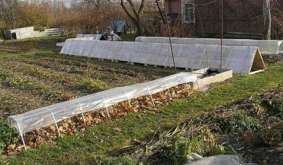 Стабильно держит температуру также картон и хвойный лапник. Сверху кладут пленку или нетканый материал. Нижнюю часть прикапывают или прижимают кирпичами.