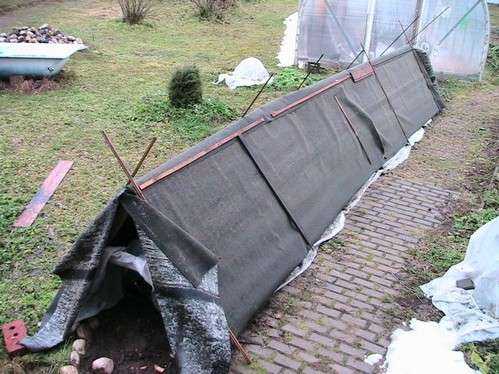 Поверх дуг или щитов нужно уложить материал для укрытия. В начале осеннего сезона его не следует закрывать с торцов, но, когда температура понизится до -5°C, он должен покрывать каркас со всех сторон.