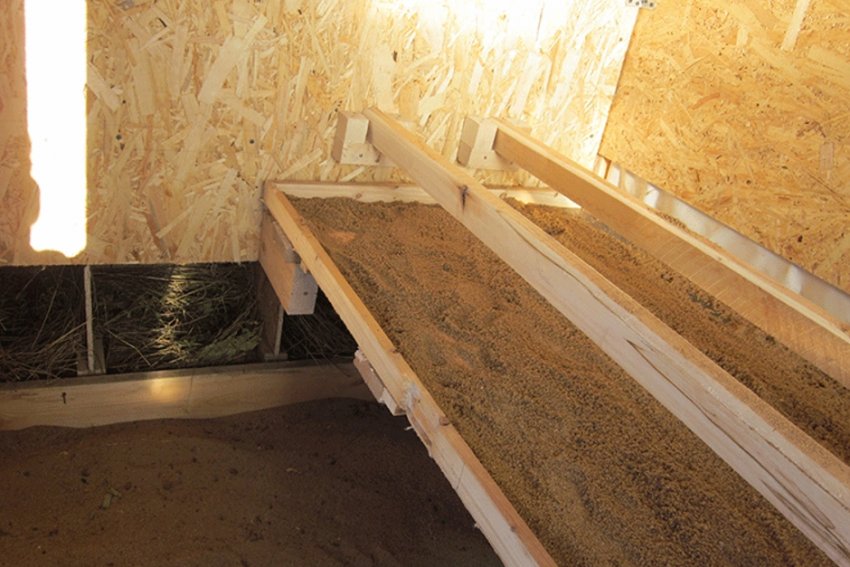 - Место для гнезд возводят в самом сухом, затененном и теплом углу курятника.