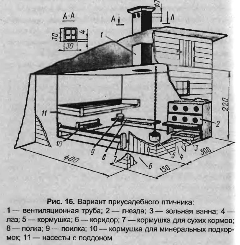 Чтобы сделать курятник на 10 кур комфортным, предусматривают наличие в нем: