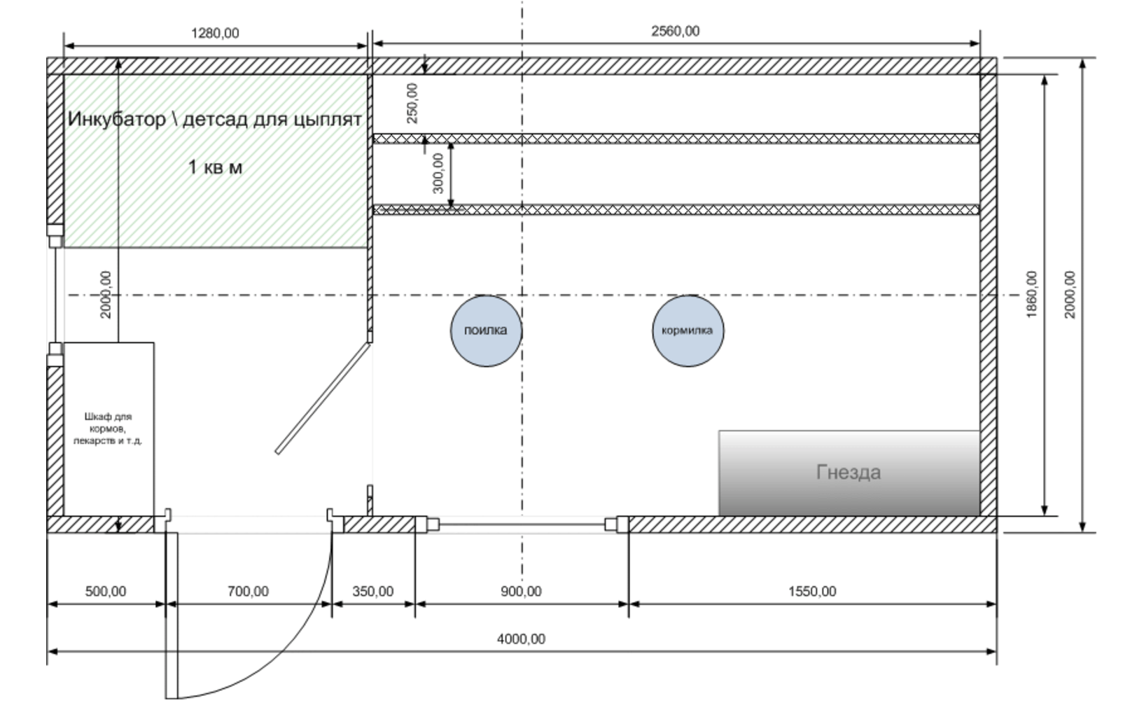 - Ко всему внутреннему обустройству делают свободный доступ: к поилкам, насесту и гнездам.