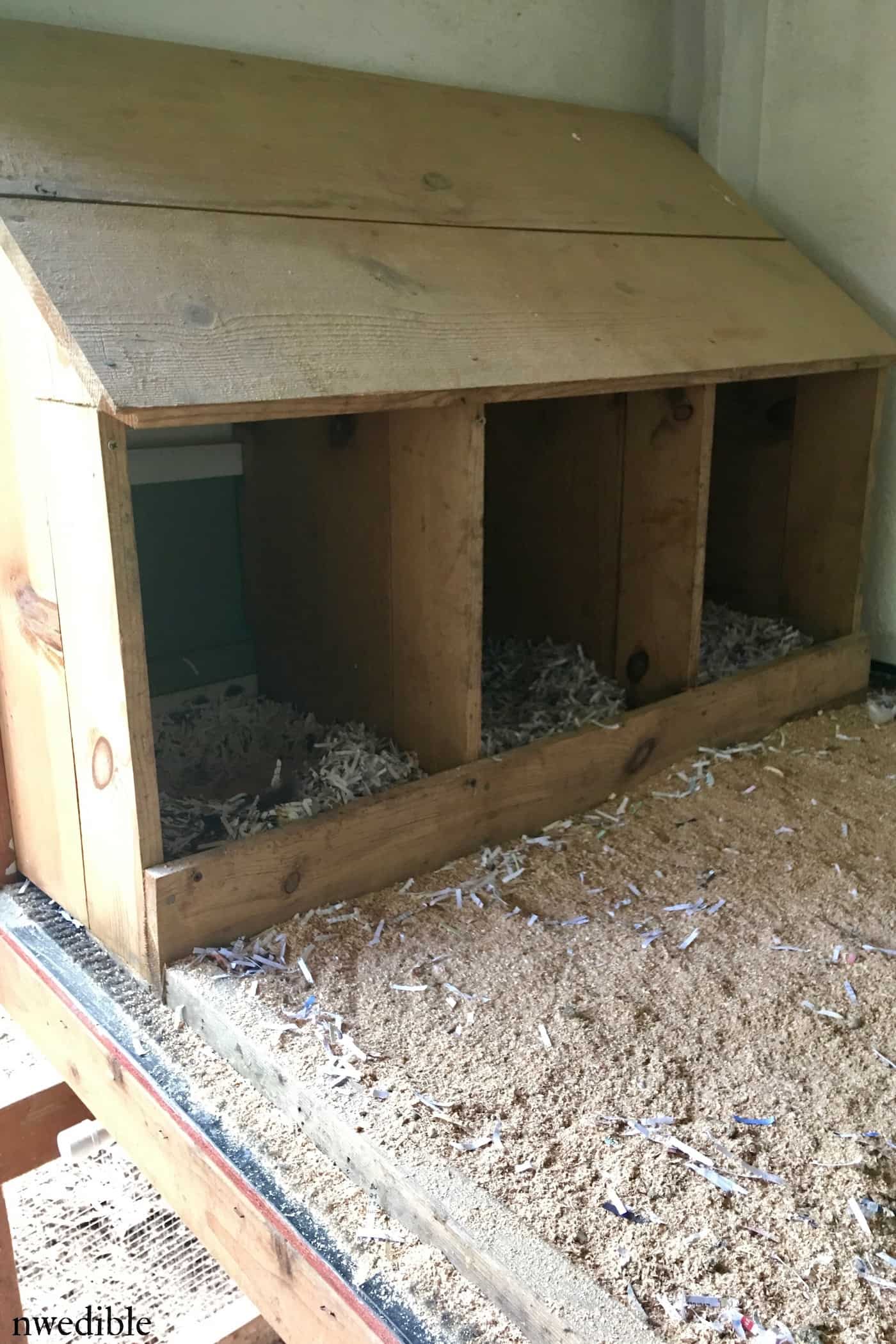Мы добавили 2 разделителя в скворечник, чтобы создать три отдельных пространства. Практическое правило — иметь 1 скворечник на каждые 4 цыплят. Я убедился, что это правда. У нас 7 цыплят, и большую часть времени они лежат только в двух коробках!