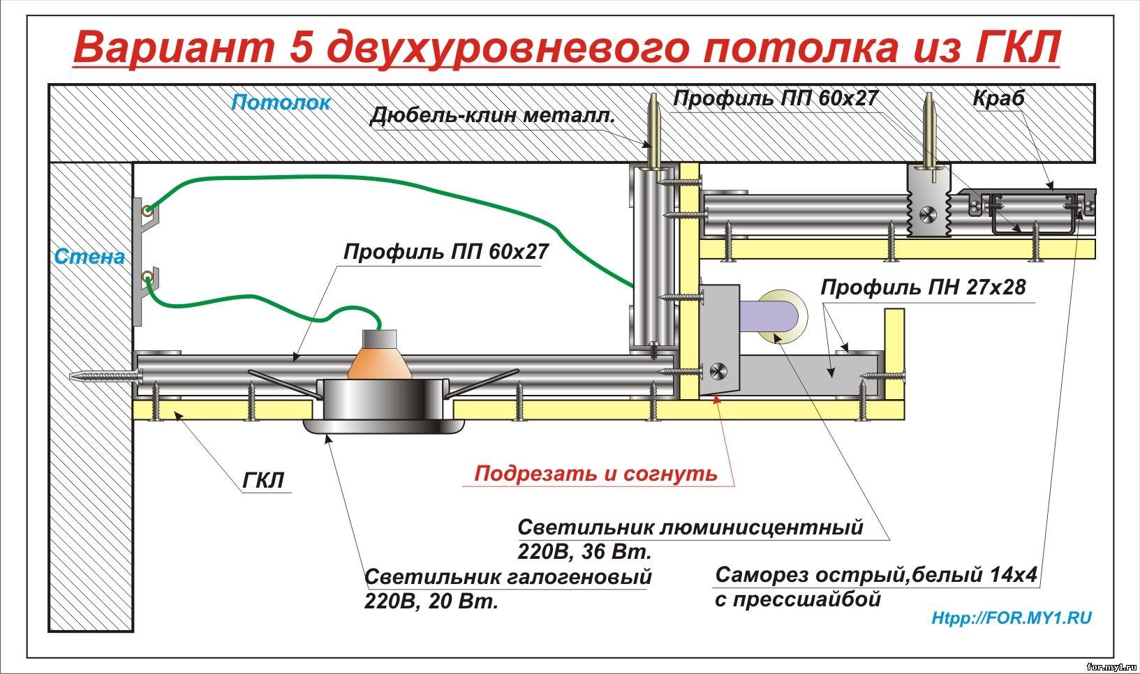 как сделать расчет гипсокартона, продумать конструкцию, какой крепеж лучше использовать, особенности устройства и монтажа двухуровневых потолков