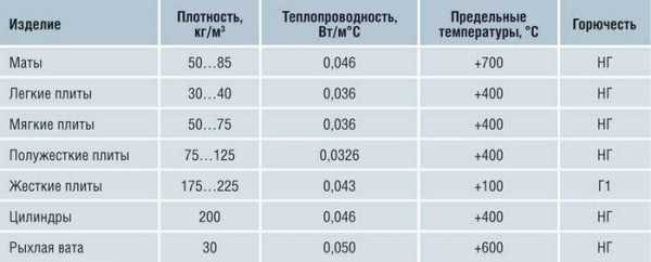 Сводная таблица достоинств и недостатков минераловатных утеплителей.