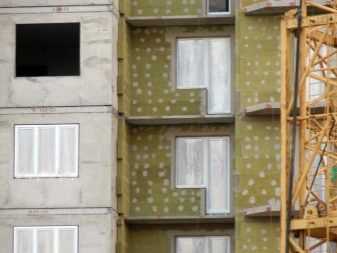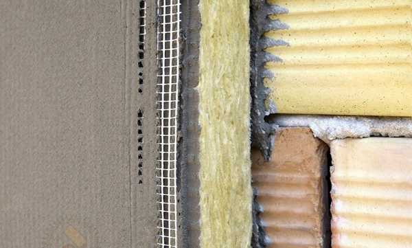 Высокие прочностные характеристики дают строителям возможность использовать каменную вату при отделке фасадов зданий. Материал наносят мокрым способом, затем его армируют и закрывают тонким слоем штукатурки.