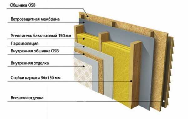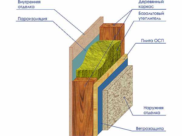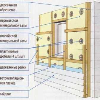 - Наружные стены утепляют ватой на основе базальта с плотностью от 80 кг/м3.