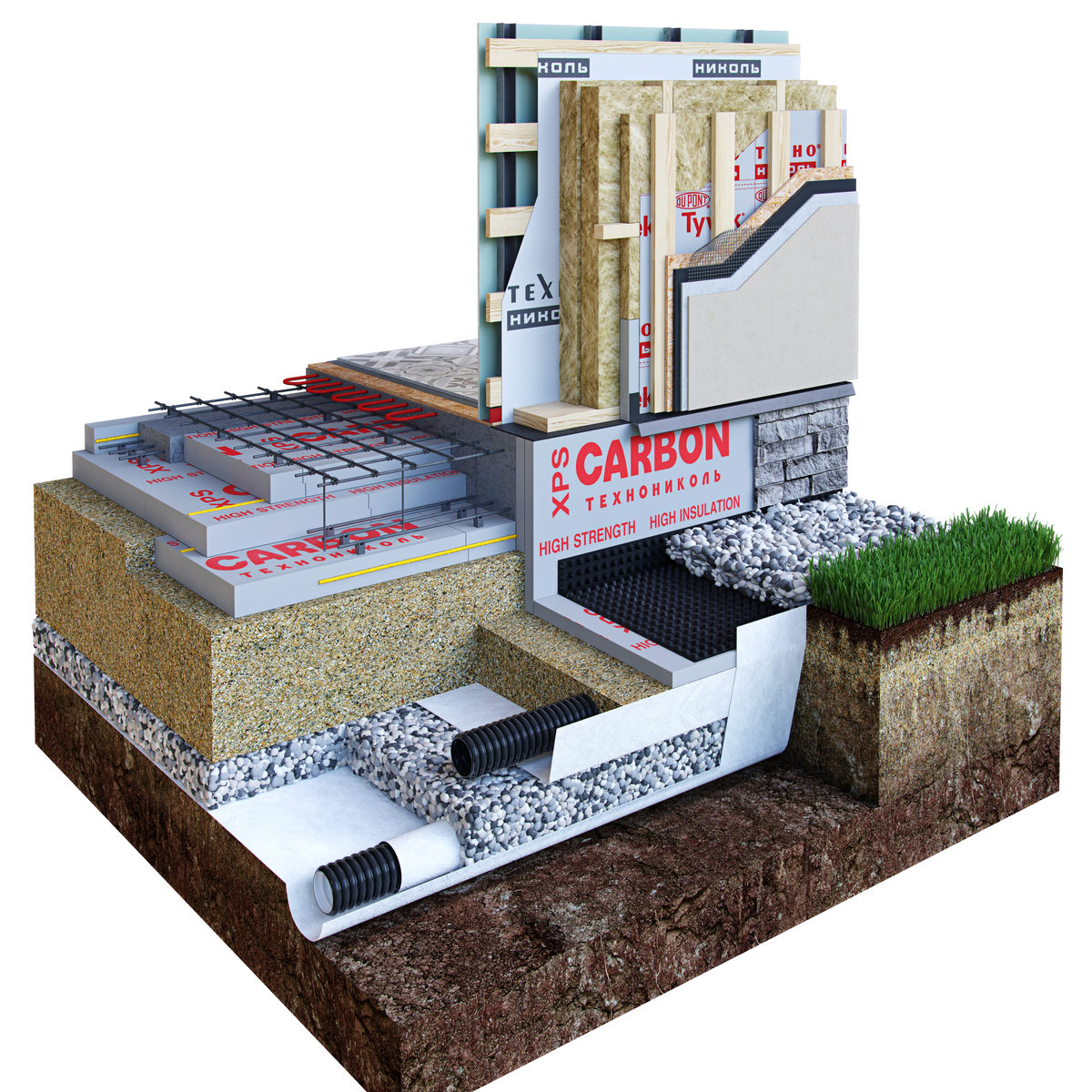 Эффективное утепление фундамента. Применение CARBON ECO SP для теплоизоляции фундаментной плиты намного сокращает потери тепла, обеспечивает экономию на отоплении, помогает сохранять тепло в доме.