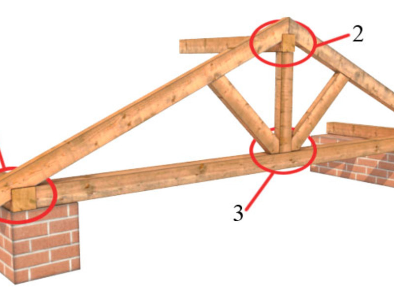 Для соединения деревянных элементов между собой используются гвозди, болты, шпильки, а также металлические пластины и уголки для укрепления узлов. Дополнительно применяются деревянные бруски или пластины.