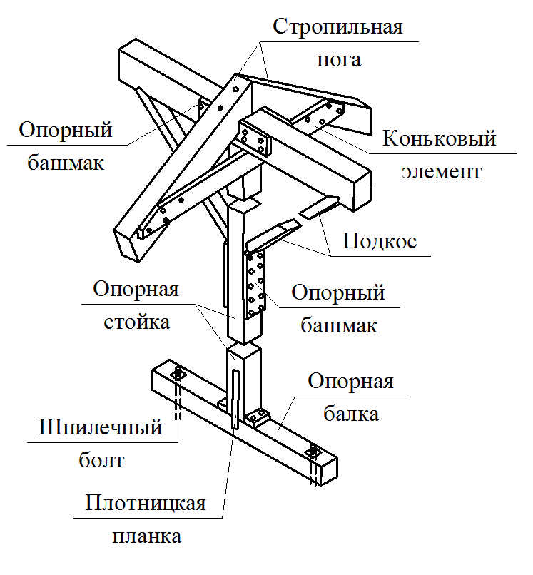 Стропильная система состоит из многих элементов, каждый из которых выполняет свою задачу.