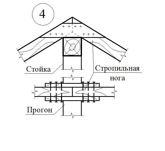 При креплении внахест стропила, находящиеся с противоположных сторон, заходят друг на друга и соприкасаются боковыми поверхностями. Их соединяют болтами, гвоздями или шпильками.