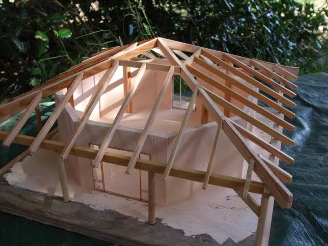 Плоскость каждого ската контролировали ниткой, чтобы в дальнейшем обшивка не шла волной!